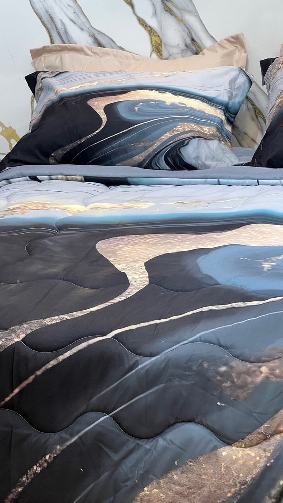 این ترکیب رنگها به ایجاد فضایی هماهنگ و آرامشبخش در اتاق خواب کمک میکند و زیبایی روتختی را برجستهتر میسازد.